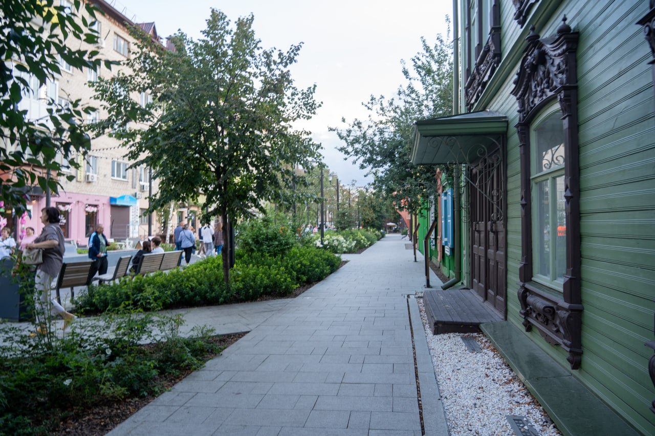 Тротуарчики, плитка, потрясающее озеленение... Не только в центре, везде вообще. На дорогах никаких исчезающих полос и постоянных перестроений.
